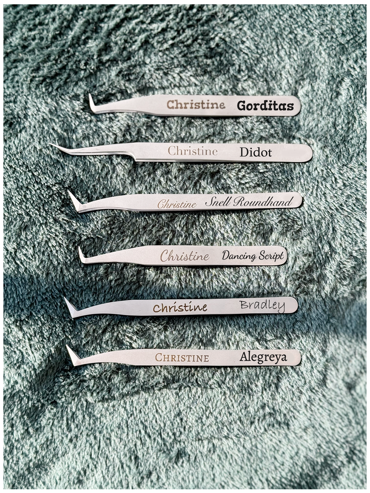 With 6 font choices to pick and up to 50 characters* now you can name your tweezers how you vibe with them... Need some ideas? Here are some suggestions by our guest Lash artists: